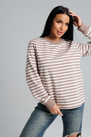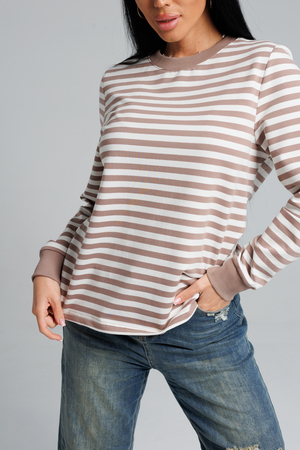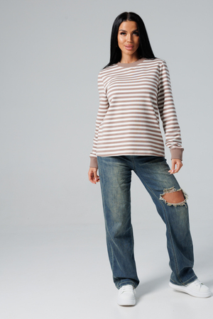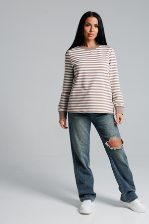 Лонгслив женский, выполнен из трикотажного полотна футер 2-нитка. Лонг свободного силуэта, втачной рукав.