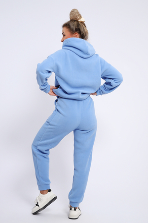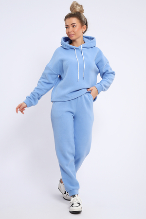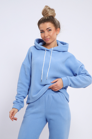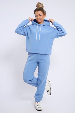 Женский костюм выполнен из флиса высокого качества. Флис - ткань с ворсистой поверхностью, что позволяет эффективно сохранять тепло. Материал прочный, эластичный, влагостойкий. Хорошо пропускает влагу, при этом не впитывает ее. По теплостойкости превосходит шерсть, но намного легче. Воздухопроницаемая гигроскопичная ткань создает для тела комфортный микроклимат. Материал гипоаллергенный, подходит для изготовления одежды детям, в том числе новорожденным. Изделия из флиса легкие, не мнутся, не деформируются, не вытягиваются.В такой одежде удобно и комфортно. Эластичность материала позволяет легко двигаться. Костюм состоит из толстовки и брюк. Толстовка с капюшоном и шнурком. Линия плеча спущена, длинный рукав. По низу толстовки имеется резинка с фиксатором, с помощью которой Вы можете собрать изделие как вам хочется и нравится. Брюки представлены с вместительными боковыми карманами. Манжеты брюк выполнены из основного материала, а пояс на специализированной поясной машине, что делает швы ровными и качественными. Свободный крой прекрасно будет смотреться на дамах с любыми формами. Костюм такого плана представлен в широкой размерной сетке, что позволяет выбрать его как девушке, так и женщине. Однотонный костюм модных расцветок будет удачным выбором для поездок в отпуск, на пикник, для школы, для активного отдыха и прогулок по городу. Будет гармонично сочетаться как с кроссовками, так и с ботинками. Используя эту модель в качестве домашнего костюма, Вы поймёте, что это именно тот самый идеальный вариант, в котором будете себя чувствовать удобно, комфортно и современно. Костюм с брюками - это настоящая находка для тех, кто ценит свою индивидуальность!