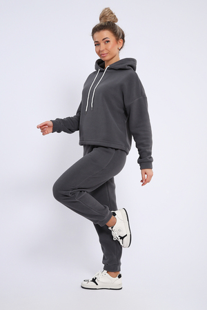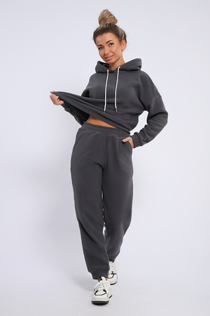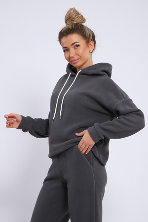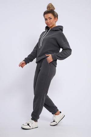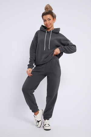 Женский костюм выполнен из флиса высокого качества. Флис - ткань с ворсистой поверхностью, что позволяет эффективно сохранять тепло. Материал прочный, эластичный, влагостойкий. Хорошо пропускает влагу, при этом не впитывает ее. По теплостойкости превосходит шерсть, но намного легче. Воздухопроницаемая гигроскопичная ткань создает для тела комфортный микроклимат. Материал гипоаллергенный, подходит для изготовления одежды детям, в том числе новорожденным. Изделия из флиса легкие, не мнутся, не деформируются, не вытягиваются.В такой одежде удобно и комфортно. Эластичность материала позволяет легко двигаться. Костюм состоит из толстовки и брюк. Толстовка с капюшоном и шнурком. Линия плеча спущена, длинный рукав. По низу толстовки имеется резинка с фиксатором, с помощью которой Вы можете собрать изделие как вам хочется и нравится. Брюки представлены с вместительными боковыми карманами. Манжеты брюк выполнены из основного материала, а пояс на специализированной поясной машине, что делает швы ровными и качественными. Свободный крой прекрасно будет смотреться на дамах с любыми формами. Костюм такого плана представлен в широкой размерной сетке, что позволяет выбрать его как девушке, так и женщине. Однотонный костюм модных расцветок будет удачным выбором для поездок в отпуск, на пикник, для школы, для активного отдыха и прогулок по городу. Будет гармонично сочетаться как с кроссовками, так и с ботинками. Используя эту модель в качестве домашнего костюма, Вы поймёте, что это именно тот самый идеальный вариант, в котором будете себя чувствовать удобно, комфортно и современно. Костюм с брюками - это настоящая находка для тех, кто ценит свою индивидуальность!