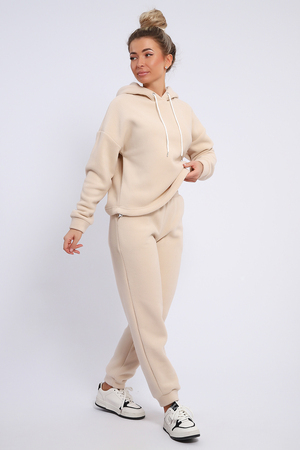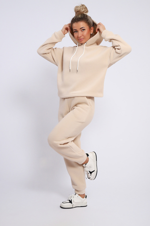 Женский костюм выполнен из флиса  высокого качества. Флис - ткань с ворсистой поверхностью, что позволяет эффективно сохранять тепло. Материал прочный, эластичный, влагостойкий. Хорошо пропускает влагу, при этом не впитывает ее. По теплостойкости превосходит шерсть, но намного легче. Воздухопроницаемая гигроскопичная ткань создает для тела комфортный микроклимат. Материал гипоаллергенный, подходит для изготовления одежды детям, в том числе новорожденным. Изделия из флиса легкие, не мнутся, не деформируются, не вытягиваются.В такой одежде удобно и комфортно. Эластичность материала позволяет легко двигаться.  Костюм состоит из толстовки и брюк. Толстовка с капюшоном и шнурком. Линия плеча спущена, длинный рукав. По низу толстовки имеется резинка с фиксатором, с помощью которой Вы можете собрать изделие как вам хочется и нравится. Брюки представлены с вместительными боковыми карманами. Манжеты брюк выполнены из основного материала, а пояс на специализированной поясной машине, что делает швы ровными и качественными. Свободный крой прекрасно будет смотреться на дамах с любыми формами. Костюм такого плана представлен в широкой размерной сетке, что позволяет выбрать его как девушке, так и женщине. Однотонный костюм модных расцветок будет удачным выбором для поездок в отпуск, на пикник, для школы, для активного отдыха и прогулок по городу. Будет гармонично сочетаться как с кроссовками, так и с ботинками. Используя эту модель в качестве домашнего костюма, Вы поймёте, что это именно тот самый идеальный вариант, в котором  будете себя чувствовать удобно, комфортно и современно. Костюм с брюками - это настоящая находка для тех, кто ценит свою индивидуальность!