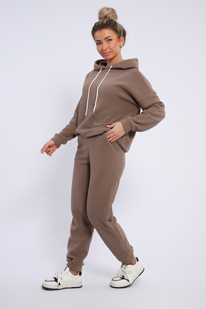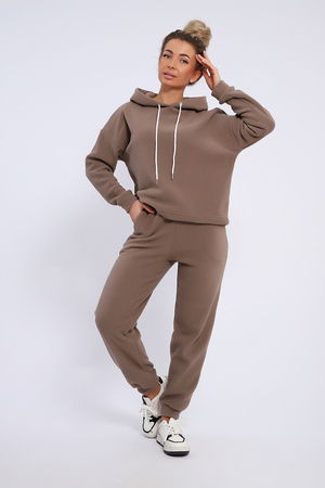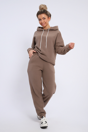 Женский костюм выполнен из флиса высокого качества. Флис - ткань с ворсистой поверхностью, что позволяет эффективно сохранять тепло. Материал прочный, эластичный, влагостойкий. Хорошо пропускает влагу, при этом не впитывает ее. По теплостойкости превосходит шерсть, но намного легче. Воздухопроницаемая гигроскопичная ткань создает для тела комфортный микроклимат. Материал гипоаллергенный, подходит для изготовления одежды детям, в том числе новорожденным. Изделия из флиса легкие, не мнутся, не деформируются, не вытягиваются.В такой одежде удобно и комфортно. Эластичность материала позволяет легко двигаться. Костюм состоит из толстовки и брюк. Толстовка с капюшоном и шнурком. Линия плеча спущена, длинный рукав. По низу толстовки имеется резинка с фиксатором, с помощью которой Вы можете собрать изделие как вам хочется и нравится. Брюки представлены с вместительными боковыми карманами. Манжеты брюк выполнены из основного материала, а пояс на специализированной поясной машине, что делает швы ровными и качественными. Свободный крой прекрасно будет смотреться на дамах с любыми формами. Костюм такого плана представлен в широкой размерной сетке, что позволяет выбрать его как девушке, так и женщине. Однотонный костюм модных расцветок будет удачным выбором для поездок в отпуск, на пикник, для школы, для активного отдыха и прогулок по городу. Будет гармонично сочетаться как с кроссовками, так и с ботинками. Используя эту модель в качестве домашнего костюма, Вы поймёте, что это именно тот самый идеальный вариант, в котором будете себя чувствовать удобно, комфортно и современно. Костюм с брюками - это настоящая находка для тех, кто ценит свою индивидуальность!