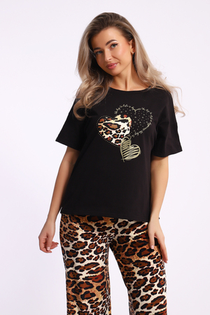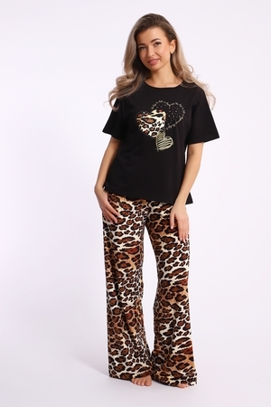 Костюм женский комбинированный, брюки +футболка. Брюки данной модели выполнены из трикотажного полотна велюр. На брюках пришивной пояс с отстрочками , по бокам присутствуют карманы. Футболка выполнена из трикотажного поолотна кулирка ( хлопок 100% ). Футболка свободная со спущенным рукавом. Отличная модель порадует вас своей комфортностью .