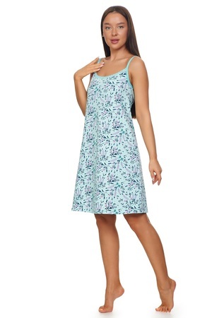Сорочка женская выполнена из приятного хлопкового трикотажного полотна с милым цветочным рисунком. Сорочка свободного кроя и оптимальной длины. Бретели выполнены из эластичной плоской резинки с регулятором длинны, что добавляет комфорта при носке сорочки, так как позволяет регулировать длину бретели, не оказывая давления на тело. По полочке выполнено нежное кружево. Сборка по полочке дает дополнительный объем в области груди, не стесняя в движений.