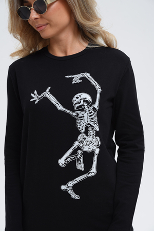 Лонгслив снова в моде и прочно обосновался в базовом гардеробе современного человека. Удобная трикотажная кофта представляет собой футболку с длинным рукавом, которую можно использовать как самостоятельный элемент, так и носить под пиджак, толстовку или рубашку. Лонгслив выполнен из высокоплотного хлопкового трикотажа и является невероятно комфортным и удобным. Футболка с длинными рукавами имеет прямой базовый крой и классическую линию плеча. Лонгслив - это неформальный стиль, когда на футболку можно надеть клетчатую рубашку и сочетать с кедами и джинсами. За счет натуральной ткани лонгслив можно носить в качестве домашней одежды или нательного белья, одежды для сна, тренировочной спортивной одежды и военной экипировки. Если вы хотите силуэт "оверсайз" нужно взять на размер или два больше, ориентируйтесь по таблице замеров. Принт светится в темноте!
