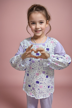Пижама с длинным рукавом для девочек  хорошо смотрится  благодаря современному крою. Выверенные лекала были созданы, чтобы ребенок мог ощущать безупречное удобство в каждом движении. Прямые брюки плотно сидят на поясе. Внутрь вшита мягкая эластичная резинка, которая не перекручивается и не сползает в процессе носки. Это важный момент для активных детей. Лонгслив с длинным рукавом обладает округлым вырезом горловины. Кофточку можно заправить или носить навыпуск. Комплект долгое время сохраняет прекрасный внешний вид благодаря высокому качеству хлопкового трикотажа. Пижамный комплект хлопковый идеально подходит для чувствительной детской кожи. Хлопок в отличие от синтетики не вызывает раздражений, отлично пропускает воздух и комфортен при длительном ношении.