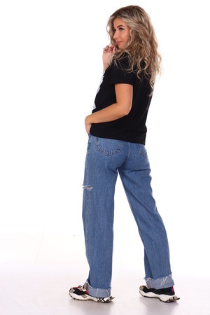 Футболка женская с оригинальным принтом, из хлопковой ткани с лайкрой. Ткань держит форму, не вытягивается, приятная на ощупь. Стильная футболка оригинального фасона. Посадка свободная.