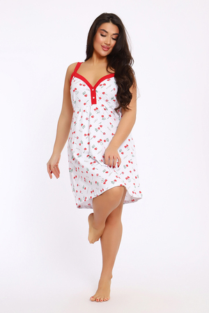 Сорочка женская на широких бретелях. Данная модель выполнена из трикотажного полотна кулирка (хлопок 100%). Полочка отрезная, на лифах присутствуют кнопки. Отличная модель для беременных и кормящих мам.