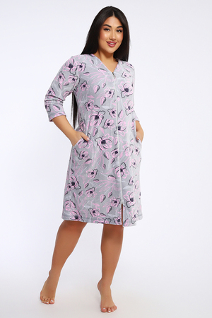 Халат женский выполнен из мягкого велюра на молнии. Рукав 3/4, с карманами, горловина обработана обтачкой. Халат отлично подойдет для дома и отдыха.