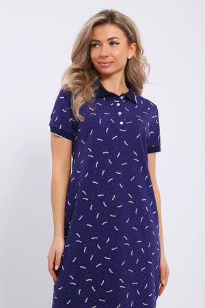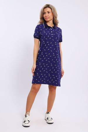 Платье-поло выполнено из лакосты набивного качества пенье. Воротник и манжеты вязаные, застежка - планка на пуговицы, по бокам разрезы. Платье очень удобное, комфортное, отлично подойдет как для дома, так и для прогулок и отдыха.