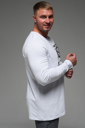 Лонгслив снова в моде и прочно обосновался в базовом гардеробе современного человека. Удобная трикотажная кофта представляет собой футболку с длинным рукавом, которую можно использовать как самостоятельный элемент, так и носить под пиджак, толстовку или рубашку. Лонгслив выполнен из высокоплотного хлопкового трикотажа и является невероятно комфортным и удобным. Футболка с длинными рукавами имеет прямой базовый крой и классическую линию плеча. Лонгслив - это неформальный стиль, когда на футболку можно надеть клетчатую рубашку и сочетать с кедами и джинсами. За счет натуральной ткани лонгслив можно носить в качестве домашней одежды или нательного белья, одежды для сна, тренировочной спортивной одежды и военной экипировки. Если вы хотите силуэт "оверсайз" нужно взять на размер или два больше, ориентируйтесь по таблице замеров.