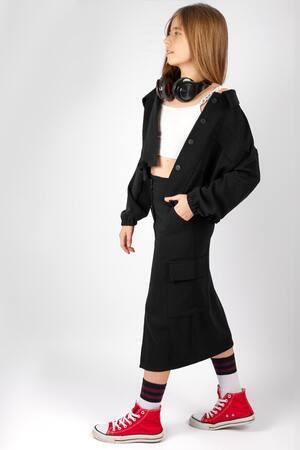 Юбка для девочки Соль&Перец прямого силуэта, с разрезом спереди. Юбка дополнена большими накладными карманами по бокам. Юбка застёгивается на молнию и пуговицу, а сзади в пояс вшита резинка для комфортной посадки по фигуре. Благодаря износостойкой костюмной ткани «Босс» юбка долго сохраняет форму и привлекательный внешний вид. Это отличный вариант для создания стильного школьного образа.