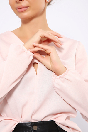 Важная и незаменимая часть гардероба деловой женщины - офисная блузка из тонкого крепа. Ткань приятна к телу, не мнется, едва просвечивает. Базовые расцветки и классический крой без лишних деталей помогут вам создать деловой и в то же время женственный образ. Блузка прямого кроя, длинный рукав снизу присборен на резинку. Изюминкой изделия является пата, при помощи которой на груди образуются мягкие складки. Горловина обработана обтачкой, длина изделия чуть ниже линии бедра. Блузку можно комбинировать и с брюками, и с юбкой, носить взаправку и навыпуск. В офисе, в школе, на празднике или на торжественном мероприятии эта блузка будет уместна и востребована, в ней вы будете себя чувствовать комфортно и уверенно.