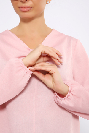 Важная и незаменимая часть гардероба деловой женщины - офисная блузка из тонкого крепа. Ткань приятна к телу, не мнется, едва просвечивает. Базовые расцветки и классический крой без лишних деталей помогут вам создать деловой и в то же время женственный образ. Блузка прямого кроя, длинный рукав снизу присборен на резинку. Изюминкой изделия является пата, при помощи которой на груди образуются мягкие складки. Горловина обработана обтачкой, длина изделия чуть ниже линии бедра. Блузку можно комбинировать и с брюками, и с юбкой, носить взаправку и навыпуск. В офисе, в школе, на празднике или на торжественном мероприятии эта блузка будет уместна и востребована, в ней вы будете себя чувствовать комфортно и уверенно.