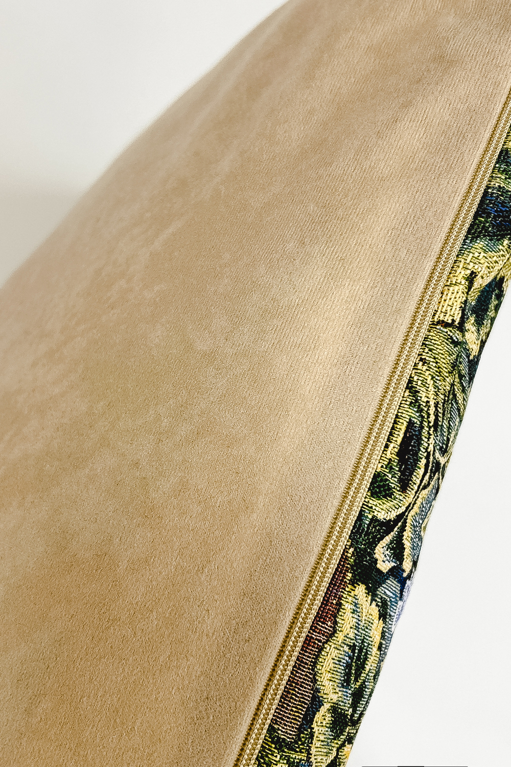 Гобелен – это плотный материал, который используется для пошива одежды, аксессуаров и домашнего текстиля. Благодаря перекрестному переплетению нитей он обладает яркой фактурой и повышенной плотностью.