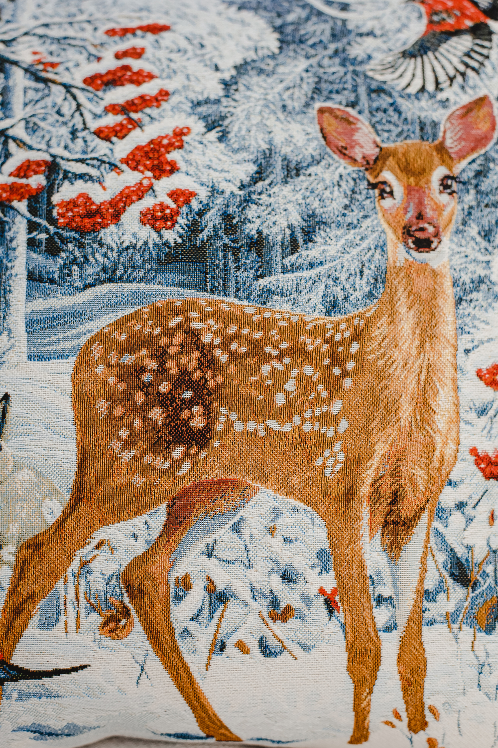 ВАЖНО размер может не много отличаться +- 3 см!!!!! Односторонняя наволочка декоративная размером 45х45 см(+-3см). У наволочки гобеленовой молния находиться в нижнем шве изделия. Уход - машинная стирка при 30 градусах на деликатном режиме с закрытой молнией. Не смешивать при стирке с другими тканями. Утюжить на среднем температурном режиме. При правильном уходе наволочка декоративная прослужит долгие годы в неизменном состоянии: не линяет и не дает усадку. Качественная и удобная в использовании, устойчивая к истиранию красок и деформациям при стирке, такой чехол на подушку будет долгие годы радовать красотой и эстетичностью! Обратная сторона наволочки на диван из однотонной гобеленовой ткани. Прекрасный рисунок на наволочке декоративной новогодней гармонично дополнит самый изысканный интерьер, привлекая внимание своей теплотой и оригинальностью. Мягкий материал необычайно приятен и прочен. Гобеленовое изделие так же подойдет в качестве ПОДАРКА вашим родным на новый год, друзьям и близким маме или бабушке)