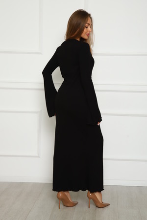 Женское обтягивающее трикотажное платье лапша – это роскошная универсальная модель для стильного и трендового образа. С длиной в пол оно идеально подходит как для повседневного использования в демисезонное время, так и для вечерних мероприятий летом или поход в ресторан на свидание зимним вечером. Стильный приталенный крой обрамляет фигуру, а утягивающие завязки придают стройный женственный силуэт, сочетая в себе нежность и элегантность. Этот модный наряд со шнуровкой отлично сочетается с различными аксессуарами. В основе платья - трикотажный однотонный материал, обеспечивающий качество и комфорт при носке. Приятное к телу теплое полотно позволяет коже дышать, долго сохраняет первоначальный вид и стиль платья. Длинные расклешенные широкие рукава добавляют изысканности обтягивающему платью в рубчик и гармонично завершают композицию. Возможность комбинировать с любой обувью, будь то летние ботинки, зимние туфли или кеды, дает шанс создавать луки для любого сезона, будь то весна или осень. Этот фасон исключительно универсален: он подойдет для офиса, прогулок или праздничных торжественных событий таких как, день рождения, вечеринка, фотосессия, корпоратив, на новогоднее мероприятие или просто выход в клуб. Красивый внешний вид делает его идеальным выбором в праздник для девушек и женщин всех возрастов, подросткам для школьных молодежных торжеств, девушкам на весеннюю прогулку и для деловой встречи, подружкам невест на свадебное мероприятие. Это шикарное коктейльное черное платье можно носить каждый день или сохранить для особых случаев – его привлекательность от этого не изменится.
