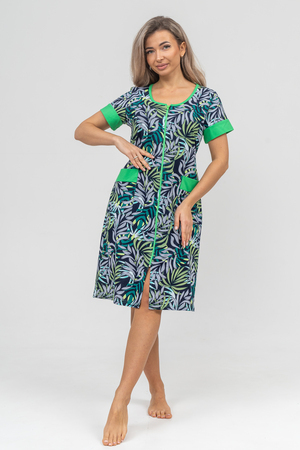 Женский халатик на молнии – самая распространенная и универсальная одежда для домашнего отдыха и хозяйственных хлопот. После трудного рабочего дня, приходя домой, первым делом хочется переодеться. И данная модель это идеальный вариант среди представительниц прекрасной половины человечества. Модель выполнена из 100% хлопчатобумажной ткани. Халат так же дополняет яркая отделка по рукавам и карманам. А пояс на линии талии поможет легко смоделировать женственный силуэт и при этом Вы будете чувствовать себя легко и непринуждённо. Данная модель прекрасно подойдёт для дома, дачи и отдыха, создавая по-настоящему яркий образ и хорошее настроение! Рост модели на фото 165см.