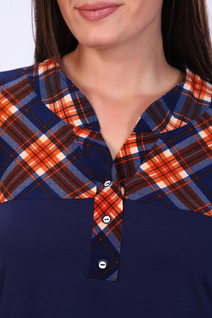 Туника выполнена в оригинальном комбинированном дизайне: передняя полочка расположена на кокетке, что добавляет изюминку и привлекает внимание. Комбинация двух цветов на передней части создает утонченный и стильный образ, который подчеркнет вашу индивидуальность. Цветная спинка завершает образ, делая тунику яркой и запоминающейся. Такой продуманный дизайн позволяет легко сочетать ее с другими предметами гардероба, создавая как повседневные, так и более формальные образы.