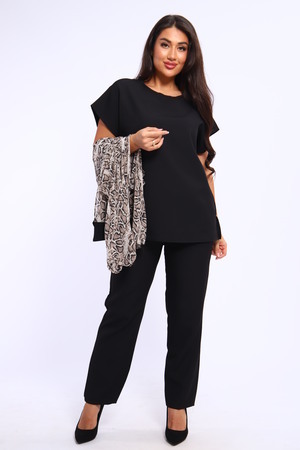 Брючный костюм женский больших размеров доступен в двух цветах, что позволяет легко подобрать идеальный вариант для любой фигуры и предпочтений. Брюки, футболку и рубашку можно носить отдельно или в сочетании с другими элементами гардероба, создавая стильные комбинации.