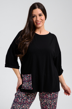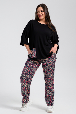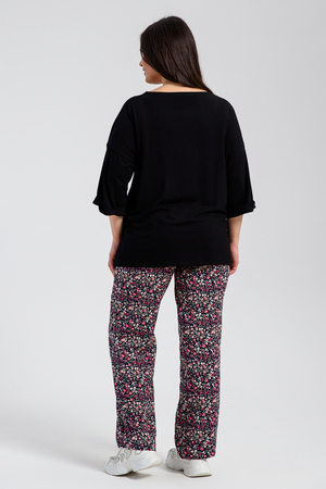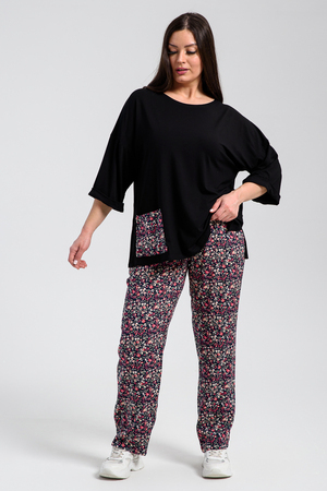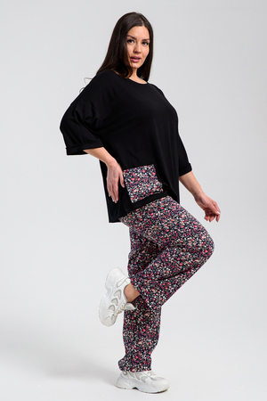 Костюм женский: туника из вискозы и брюки из штапеля. Туника очень свободная. Горловина округлая, рукав цельнокроенный со шво