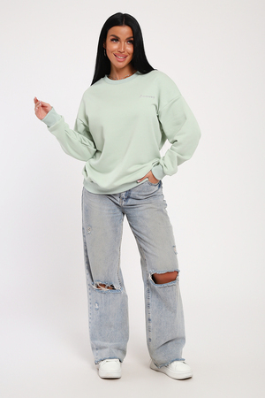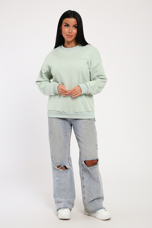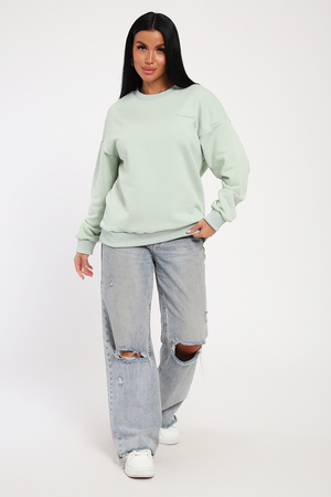 Свитшот женский с вышивкой на груди изготовлен из качественного футера 3-х нитки без начёса. Модель в свободном стиле оверсайз, спущенная пройма, длинный рукав. Круглая горловина, манжет рукава и низ толстовки обработаны эластичной резинкой - кашкорсе. Комфортный, тёплый джемпер необходимая вещь в женском гардеробе. Длина рукава в таблице измерений указана от начала горловины.