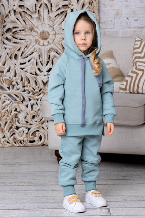 Костюм "Сью" для девочки, предназначен для носки в прохладных помещениях и прогулки на улице, выполнен из плотного футера с начёсом. Толстовка на поясе, с капюшоном на шнурке, рукава-реглан на манжетах. Разрезы в боковых швах по нижней части толстовки придают модели особую оригинальность. Штанишки на манжетах, пояс на резинке, декоративная отстрочка в области колен. В таком костюме ребёнок будет чувствовать себя комфортно, уютно и всегда будет в центре внимания!