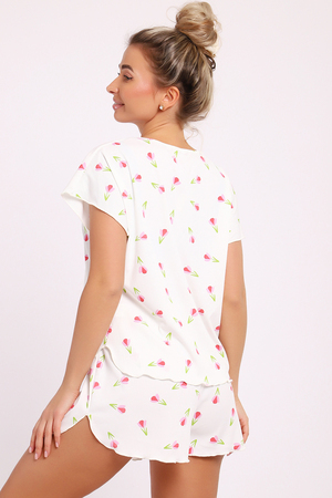 Не упустите возможность обновить свой гардероб с помощью стильной и удобной домашней одежды. Наша пижама с шортами — это не просто одежда, это способ создать уютную атмосферу в вашем доме. Кроме того, яркий и жизнерадостный принт поможет поднять настроение в любой ситуации. Выбирая этот набор, вы делаете ставку на качество и стиль, которые не подведут вас в самый нужный момент. Пожалуй, такой комплект станет вашей любимой домашней одеждой, в которой приятно не только отдыхать, но и заниматься повседневными делами. Позвольте себе насладиться комфортом и женственностью в домашней обстановке с этой великолепной пижамой, которая станет вашим верным спутником в уютные вечера и спокойные утренние часы.