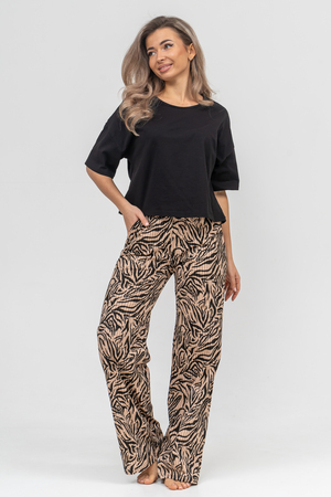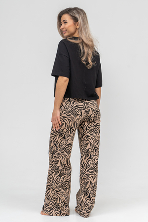 Женские стильные брюки - трубы выполнены из нового трендового 100% хлопчатобумажного полотна. Высокая посадка, вместительные боковые карманы, удобный и качественно обработанный на специальной машине пояс позволит Вам чувствовать себя комфортно. Широкие трубы смотрятся очень элегантно и женственно. Они стали трендом сезона, поскольку подчёркивают стройность и привлекательность ног, а прямой крой скрывает недостатки фигуры. При помощи такой модели можно сделать пропорции тела более сбалансированными. Женские брюки-трубы отличный предмет гардероба для любой представительницы прекрасного пола. В модели такого плана Вы будете чувствовать себя комфортно дома, на отдыхе, на даче и на море. Можете приобрести изделие в качестве подарка на любой праздник: день рождения, 8 марта, 14 февраля и просто так для души. Брюки можно купить с футболкой - костюм 36900.