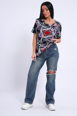 Футболка женская с V образным вырезом горловины и коротким рукавом.
