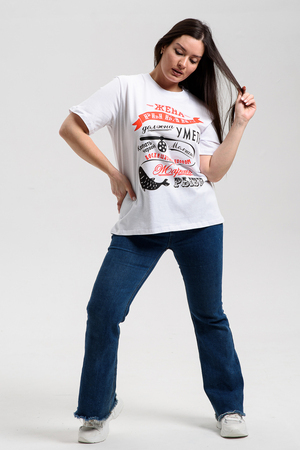 Ищете красивую и универсальную базовую одежду? Тогда вам понравится хлопковая футболка из коллекции нашего бренда Натали. Однотонная модель представлена в модном белом цвете, который уже стал трендом сезона. Сшита из дышащей ткани, в составе 100% хлопок. Плотный и мягкий трикотажный материал высокого качества не дает усадки после стирки. Трендовая футболочка с ярким принтом удобная и красивая одежда для женщин, которая имеет качественный пошив.