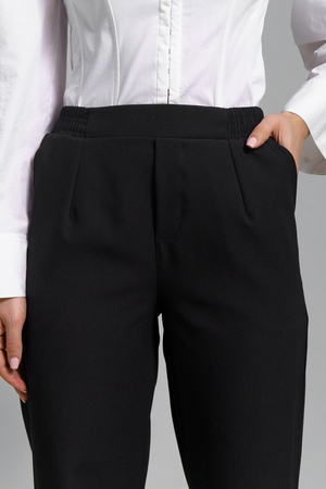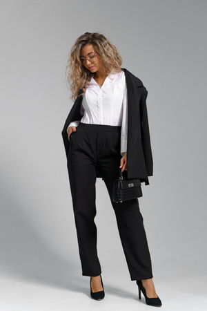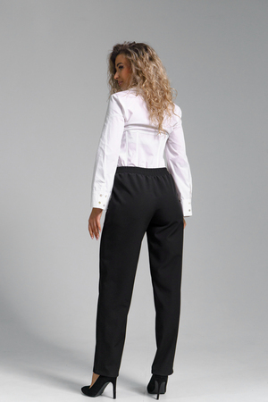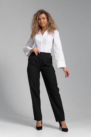 Женские классические брюки на резинке подчеркнут женственность и элегантность фигуры и станут незаменимым элементом базового гардероба. Брюки прямые выполнены из качественной, плотной, приятной на ощупь костюмной ткани, которая не деформируется после стирки, не вытягивается и не скатывается при активном образе жизни. Брюки с высокой посадкой и эластичной резинкой на поясе обеспечат Вам идеальный силуэт, подчеркнут все достоинства фигуры и создадут максимальный комфорт в движении. Пояс выполнен на специализированной поясной машине. На карманах стоят усиленные закрепки. Прямые брюки красиво оформлены и за счет удачного фасона невероятно стройнят. Женские брюки с карманами представлены до большого размера - плюс сайз, plus size. Благодаря своему крою и выверенному лекалу подойдут как стройным, так и полным женщинам, беременным девушкам или молодым мамам. Брюки бананы идеальны для создания строгих офисных луков и стильных повседневных, для школы и работы, а также праздничных вечерних образов. Данная модель выгодно подчеркнет Ваши достоинства и в домашней обстановке, удивите своих близких стильными домашними образами. Однотонные цвета этих брюк гармонично сочетаются с любым верхом. Благодаря качественному материалу и модным цветам этого сезона, они будут радовать Вас всегда и создавать безупречный образ в любое время года. Проявите свой стиль и модный вкус, выбрав наш товар.