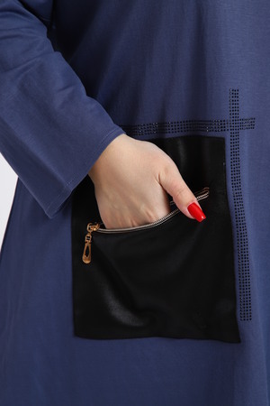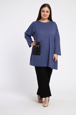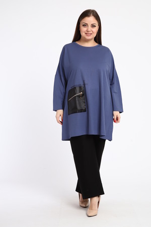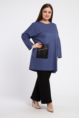 На полочке туники расположен стильный карман из стрейч-кожи, украшенный молнией, что добавляет изделию нотку дерзости и современности.