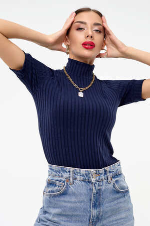Женская водолазка футболка лапша с коротким рукавом от бренда София37 – это базовая вещь, которая станет незаменимой в вашем гардеробе на все времена года.Особенностью данной модели является прилегающий силуэт, который слегка подчеркивает фигуру и делает образ стильным. Водолазка имеет короткий рукав и воротник гольф, что придает ей современный и элегантный вид.