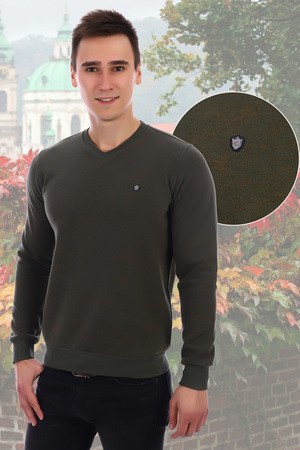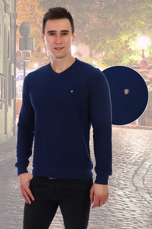 Джемпер мужской. Слева вышивка и по верху вышивки железный значок. Ворот-мыс