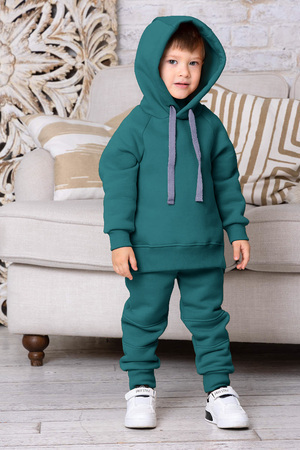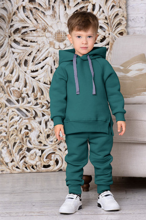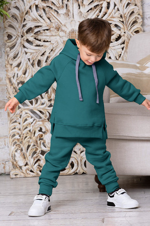 Костюм "Тим" для мальчика, предназначен для носки в прохладных помещениях и прогулки на улице, выполнен из плотного футера с начёсом. Толстовка на поясе, с капюшоном на шнурке, рукава-реглан на манжетах. Разрезы в боковых швах по нижней части толстовки придают модели особую оригинальность. Штанишки на манжетах, пояс на резинке, декоративная отстрочка в области колен. В таком костюме ребёнок будет чувствовать себя комфортно, уютно и всегда будет в центре внимания!