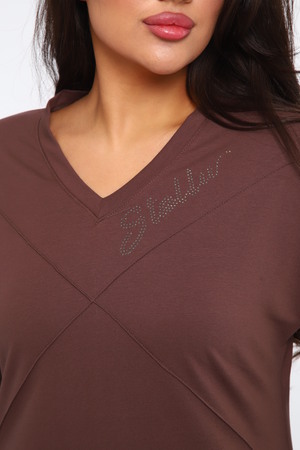 Прямой силуэт платья обеспечивает свободу движений и особый комфорт в носке, подходя для любого типа фигуры. Длинный рукав с аккуратной манжетой добавляет изысканности и утонченности вашему образу, делая его более завершенным и гармоничным. V-образный вырез визуально удлиняет шею и акцентирует внимание на вашей женственности, придавая всему образу нотки элегантности и роскоши.