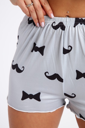 Пижама женская с шортами и майкой на бретелях Женская пижама — это отличный выбор для тех, кто хочет чувствовать себя комфортно и уютно в домашней одежде. Стильный комплект состоит из свободных шорт и элегантного топа. Благодаря свободному крою пижама не сковывает движений. Она сшита из лёгкой ткани, поэтому почти не ощущается на теле. Шорты и топ выполнены в свободном стиле. Принт подчёркивает женственность образа, добавляет яркости и милоты. Именно поэтому пижамы с таким рисунком сейчас особенно популярны среди женщин.