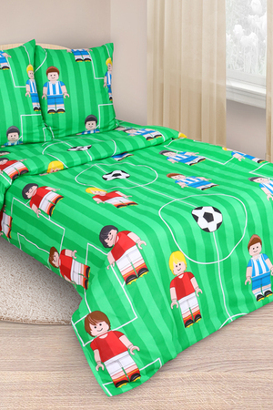 Комплект постельного белья "Дай Поспать", дизайн "Футболисты", 1,5 спальный с 2-мя наволочками 70х70, изготовлен из набивной бязи Российского производителя, плотностью 125 гр./кв.м. Бязь - хлопчатобумажная плотная ткань полотняного переплетения. Ткань выдерживает многократные стирки без потери цвета, естественная усадка не превышает норму, обладает низкой сминаемостью, качество пошива фабричного уровня. Интересный рисунок поможет малышу получить позитивные эмоции перед сном. Предложенная комплектация может незначительно отличаться от фотоизображения.