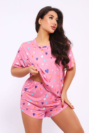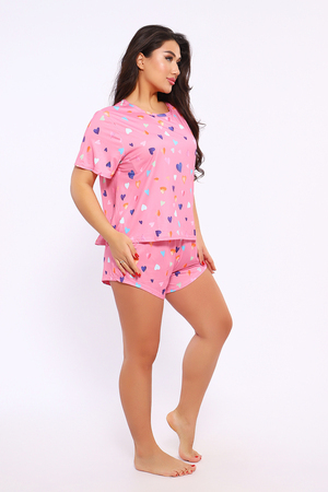 Домашний костюм с шортами -пижама с шортами- идеальный выбор для дома и сна! Красивый женский комплект состоит из кофты с коротким рукавом и  шорт средней посадки. Мы используем только высококачественные и проверенные материалы, чтобы обеспечить максимальный комфорт. Бархатная текстура ткани приятна к телу и идеально подходит для осени. Трикотажная футболка со спущенным плечом имеет полуприлегающий силуэт.  Короткие шорты на резинке имеют классический крой. Сексуальный костюм из вискозы мягкий и нежный по фактуре, хорошо смотрится и создаёт привлекательные блики. Удобный домашний набор-двойка подходит для женщин и девушек. Наличие больших размеров делает изделие универсальным. В этом костюме вы будете чувствовать себя уютно и комфортно в любое время суток.
