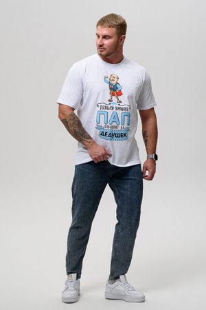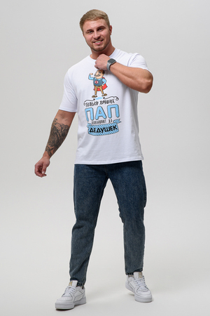 Футболка это идеальный выбор для мужчин, предпочитающих комфорт и стиль. Сделанная из 100% хлопка, эта футболка обеспечивает отличную дышащую способность, делая её идеальной для домашнего использования, пляжного отдыха или просто для повседневного ношения. Уникальный принт на передней части добавляет элемент индивидуальности и стиля, делая эту футболку отличным дополнением к вашему гардеробу.