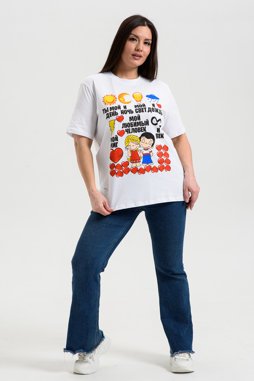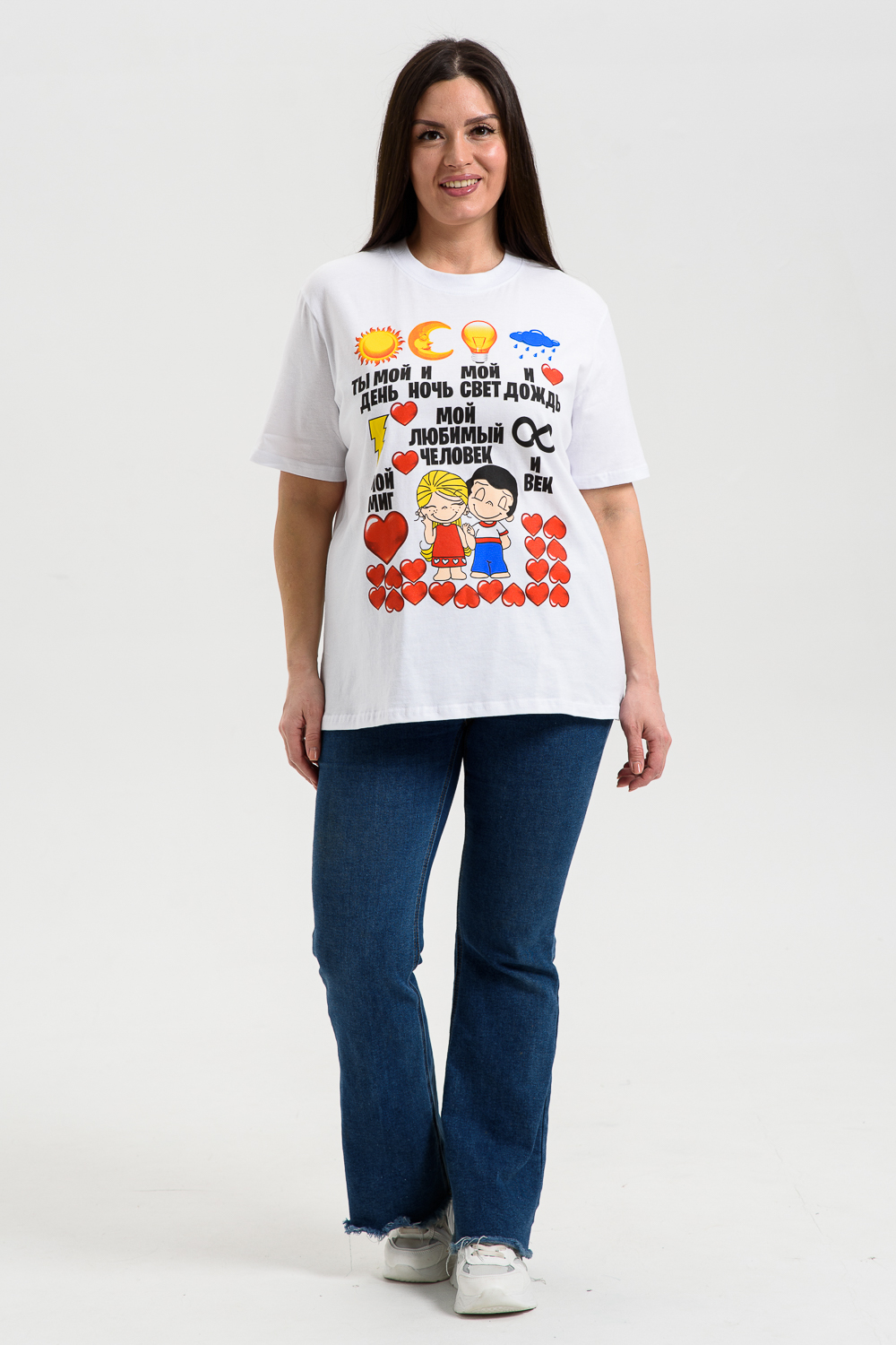 Футболка это идеальный выбор для женщин, предпочитающих комфорт и стиль. Сделанная из 100% хлопка, эта футболка обеспечивает отличную дышащую способность, делая её идеальной для домашнего использования, пляжного отдыха или просто для повседневного ношения. Уникальный принт на передней части добавляет элемент индивидуальности и стиля, делая эту футболку отличным дополнением к вашему гардеробу.