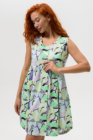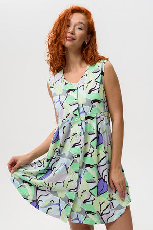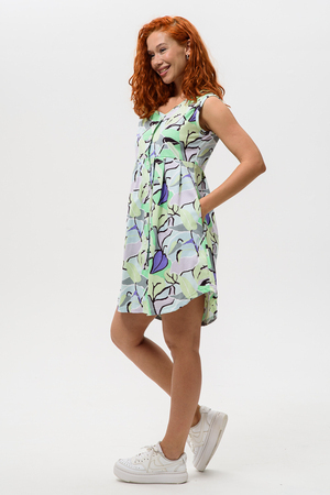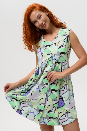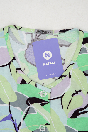 Халатик свободного силуэта с воздушными рукавами. Особенностью кроя является завышенная талия, поэтому скрывается животик. Удобные карманы. Подборт халата укреплён флизелином для укрепления петель и пуговиц.
