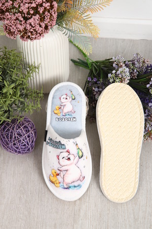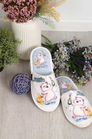 Мягкие домашние тапочки с закрытым носом и открытой пяткой – это идеальный аксессуар для создания уютной атмосферы в вашем доме! Верх и стелька изготовлены из теплых и приятных на ощупь материалов. Подошва изготовленная из высококачественного ПВХ, который еще называют EVA. Обеспечивает отличное сцепление с полом и защиту от скольжения. Это уникальный материал и при всей своей комфортабельности, долго способен выдерживать большие нагрузки Удобные и стильные, эти тапочки с рисунком станут незаменимым аксессуаром вашего домашнего гардероба как зимой, так и в летние дни! Все наши тапки прошиваются для большей износостойкости армированной нитью, а сублимационная печать позволяет наносить краску на волокна ткани, из-за чего цвета получаются насыщенными и сохраняют яркость даже после нескольких стирок. Дизайнерские принты  придадут уникальности и поднимут настроение вам и вашим гостям!