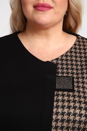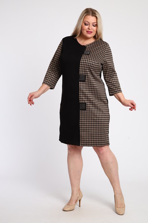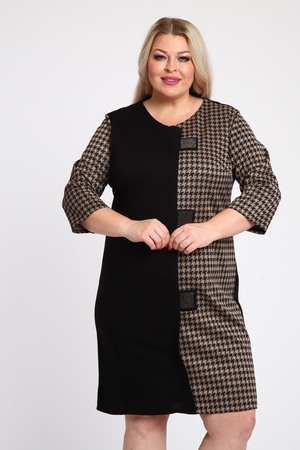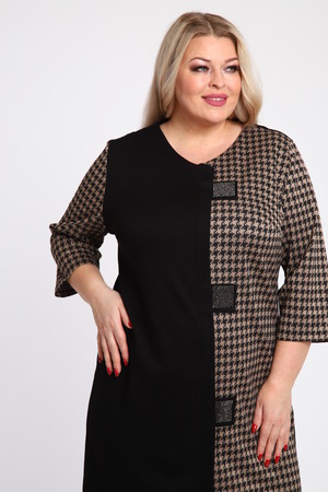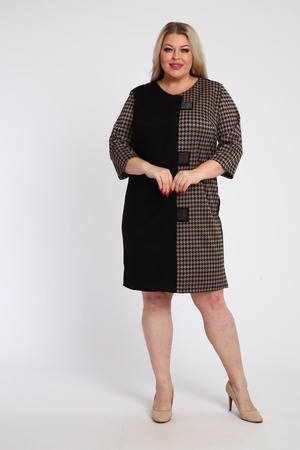 Женское платье из ткани Академик с модным принтом "гусинные лапки" и однотонной вставкой, размерный ряд 58-64: Идеальный выбор для стильных женщин