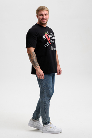 Футболка это идеальный выбор для мужчин, предпочитающих комфорт и стиль. Сделанная из 100% хлопка, эта футболка обеспечивает отличную дышащую способность, делая её идеальной для домашнего использования, пляжного отдыха или просто для повседневного ношения. Уникальный принт на передней части добавляет элемент индивидуальности и стиля, делая эту футболку отличным дополнением к вашему гардеробу.