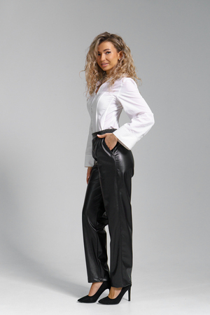 Хит сезона! Женские классические брюки на резинке подчеркнут женственность и элегантность фигуры и станут незаменимым элементом базового гардероба. Брюки прямые выполнены из качественной, плотной, приятной на ощупь кожи на замше, которая не деформируется после стирки и не вытягивается при активном образе жизни, обладает великолепным внешним видом и износоустойчивостью. Брюки с высокой посадкой и эластичной резинкой на поясе обеспечат Вам идеальный силуэт, подчеркнут все достоинства фигуры и создадут максимальный комфорт в движении. Пояс выполнен на специализированной поясной машине. На карманах стоят усиленные закрепки. Прямые брюки красиво оформлены и за счет удачного фасона невероятно стройнят. Женские брюки с карманами представлены до большого размера - плюс сайз, plus size. Благодаря своему крою и выверенному лекалу подойдут как стройным, так и полным женщинам, беременным девушкам или молодым мамам. Брюки бананы идеальны для создания строгих офисных луков и стильных повседневных, для школы и работы, а также праздничных вечерних образов. Данная модель выгодно подчеркнет Ваши достоинства и в домашней обстановке, удивите своих близких стильными образами. Однотонные цвета этих брюк гармонично сочетаются с любым верхом. Чёрный - классика современности и насыщенный шоколадно - коричневый Mocha Mousse - цвет года. Благодаря качественному материалу и модным цветам этого сезона, они будут радовать Вас всегда и создавать безупречный образ в любое время года. Проявите свой стиль и модный вкус, выбрав наш товар.