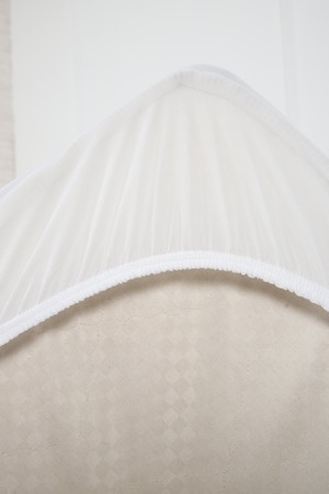 Особенностью данного наматрасника является его способность удерживать чехол на матрасах разной высоты. Это достигается благодаря эластичной трикотажной структуре боковых частей и резинке по периметру.