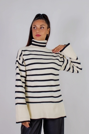 Модель: Теплая туника в полоску высокий ворот арт. 2918