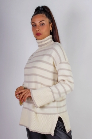 Модель: Теплая туника в полоску высокий ворот арт. 2918