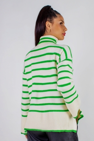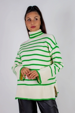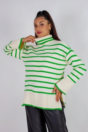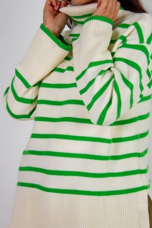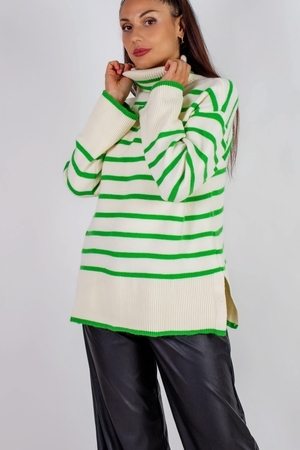 Стильный и уютный джемпер в полоску станет идеальным дополнением вашего гардероба. Изготовлен из качественной акриловой плотной пряжи, джемпер отличается не только своим актуальным дизайном, но и приятными тактильными ощущениями. Он мягкий на ощупь и абсолютно не колется, что сделает его идеальным вариантом для повседневной носки, а также для создания стильных образов в прохладную погоду.